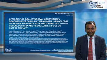 Austin Kulasekararaj, MBBS, MD, MRCP, FRCPath, presents results from the phase 3b APPULSE-PNH trial at the 2025 EHA Congress in Milan, Italy. The data demonstrate that, in patients with PNH and hemoglobin ≥10 g/dL who switched from anti-C5 therapy to iptacopan, iptacopan was superior in improving hemoglobin levels from baseline.
