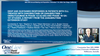 Dr. Constantine S. Tam presents an OncLive Rapid Readout on the zanubrutinib extension study, highlighting deep and durable responses with zanubrutinib, alone or in combination with obinutuzumab, in treatment-naïve and relapsed/refractory chronic lymphocytic leukemia/small lymphocytic lymphoma patients, with impressive 72-month progression-free survival rates and a favorable long-term safety profile.
