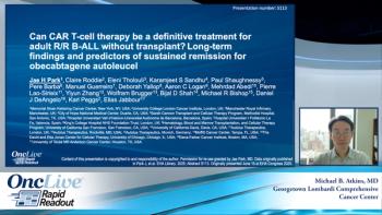 Jae Park, MD, presents long-term follow-up data from the FELIX study showing sustained remission in a subset of adult patients with relapsed/refractory B-cell acute lymphoblastic leukemia (B-ALL) treated with obecabtagene autoleucel (obe-cel), with predictors of long-term benefit and no new safety concerns identified.