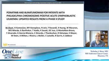 Nicholas J. Short, MD, discusses updated results from a single-arm phase 2 study investigating ponatinib plus blinatumomab in patients with Philadelphia chromosome–positive acute lymphoblastic leukemia.