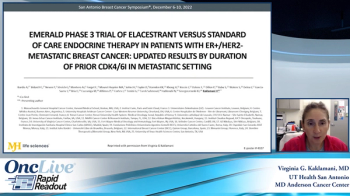 Virginia Kaklamani, MD reviews updated results and clinical implications of the phase 3 EMERALD trial evaluating elacestrant in patients with ER+/HER2- metastatic breast cancer presented at the 2022 San Antonio Breast Cancer Symposium.