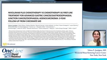 Yelena Y. Janjigian, MD, reviews the 3-year follow-up data from the CheckMate 649 trial investigating nivolumab plus chemotherapy as a first-line treatment for advanced gastric cancer/gastroesophageal junction cancer/esophageal adenocarcinoma.